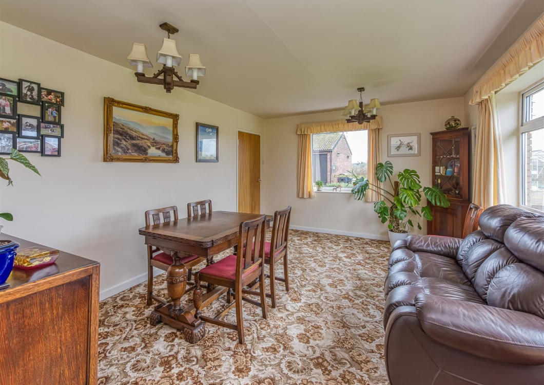 Elm Tree Farm is a large plot (approximately 2.2 acres) which has the benefit of a detached bungalow with a double garage, large driveway and an enclosed private garden. The internal accommodation briefly comprises large hallway, L shaped lounge and dining area, fitted breakfast kitchen, cloakroom, utility, bathroom and three generous bedrooms. The property benefits from oil fired central heating, double glazing and septic tank. There are variety of outbuildings including stables, barn and former pig sty’s which has mixed residential and commercial use, there is no agricultural tie remaining on the premises. There is a paddock beyond the stables.