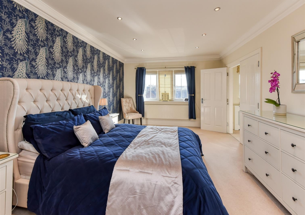 This is a modern executive detached family home with generous off road parking, integral garage and large garden, on several tiers, towards the Woodland. The internal accommodation briefly comprises lounge, dining kitchen with separate dining area, utility room and downstairs w/c to the ground floor. To the first floor there is a principal bedroom with dressing area and en-suite, double bedroom and home office/single bedroom and family bathroom. To the second floor there are two further large bedrooms and a shower room. The internal condition is very high and benefits from double glazing and central heating. VIEWING HIGHLY RECOMMENDED
