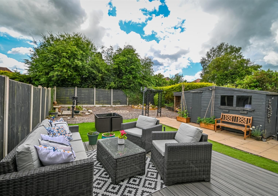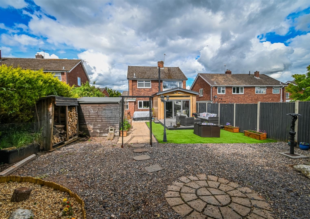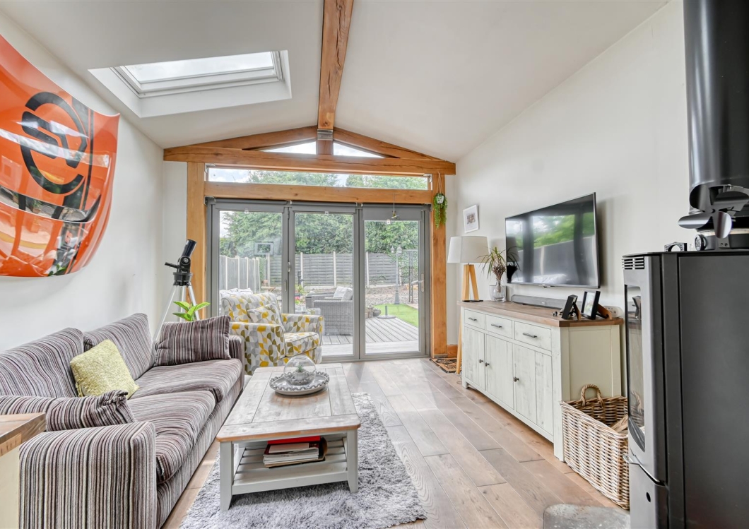A beautifully presented three-bedroom detached home, thoughtfully extended on the ground floor to include a stylish garden room. This modern residence boasts a contemporary interior finish, an adjoining garage, and a generously sized rear garden. NO UPWARD CHAIN.