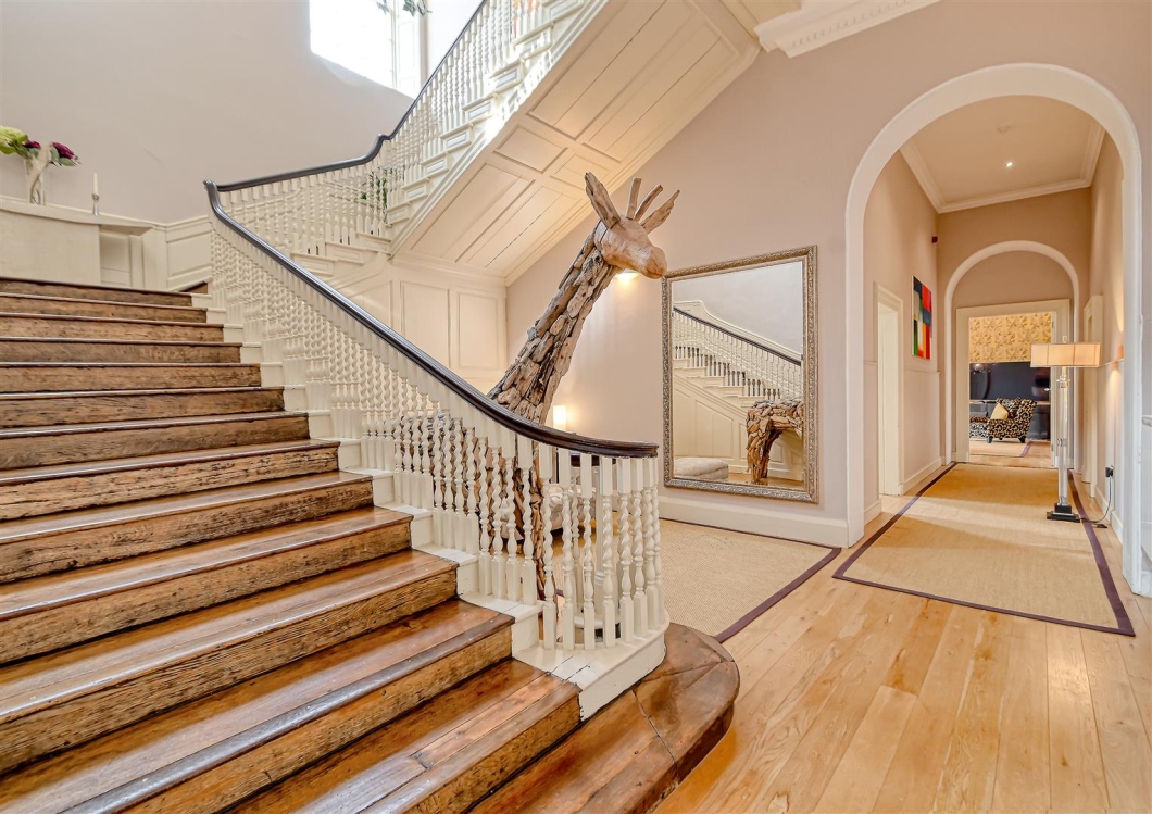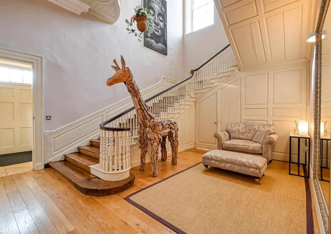 The Georgian House is one of Shropshire’s finest historical country homes, Grade II* Listed, offering magnificent stately accommodation within the Apley Park Estate near Bridgnorth. This impressive three-storey residence, spanning around 7,000 sq. ft., seamlessly blends contemporary fittings with the classical features and architecture of the period. It enjoys outstanding views over parkland, a private garden, garaging, and access to approximately 17 acres of communal grounds and a vineyard.