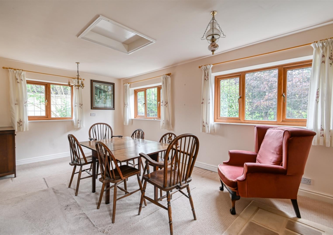 A large, detached country cottage with around half an acre of surrounding gardens enjoying a peaceful location. The property has four bedrooms - the principle suite with a dressing room and en-suite, three generous reception rooms, breakfast kitchen and a double garage. The ground floor accommodation is quite a flexible layout, whilst the gardens are mature, with an extensive range of plants and seating areas. NO UPWARD CHAIN