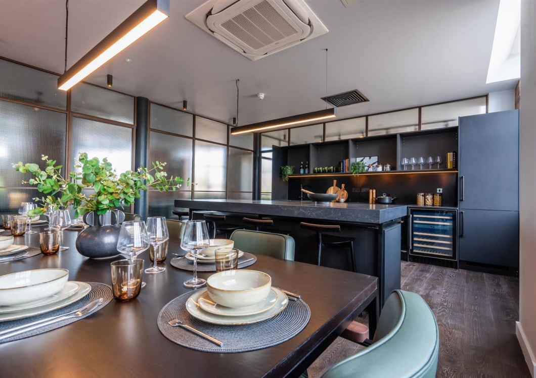 •Well-appointed kitchens featuring stone worktops, premium units and drawers with slow closing mechanisms, oven and hob, washer dryer, and fridge freezer.