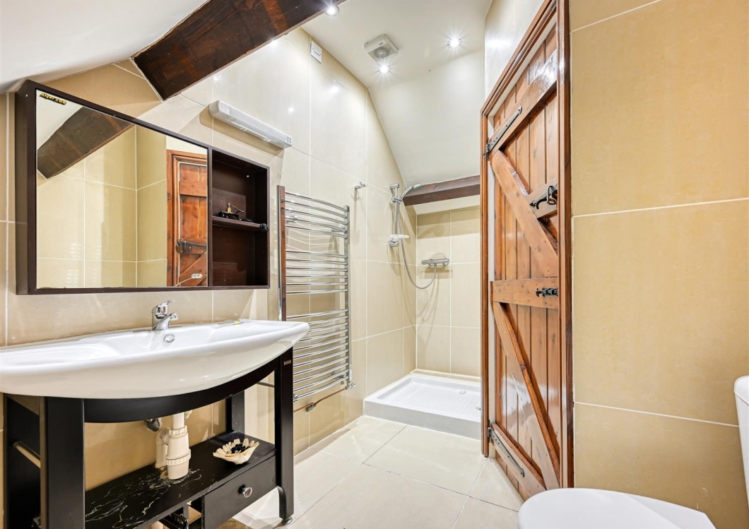 This is a particularly interesting Barn conversion which has been lovingly converted by the current owners during their tenure with lovely gardens adjoining the golf course, extensive gated parking and a garage. The Barn has leisure facilities including an indoor pool and gym with sauna. The family accommodation comprises open plan family room with vaulted ceiling, farmhouse kitchen and adjoining entertainment space with games room. There are five bedrooms. The principal bedroom benefits from a dressing room, en-suite bathroom and balcony overlooking the fields. There is a main house bathroom, a mezzanine loft area to bedroom three and a home office. The property benefits from double glazing, LPG heating and no upward chain.